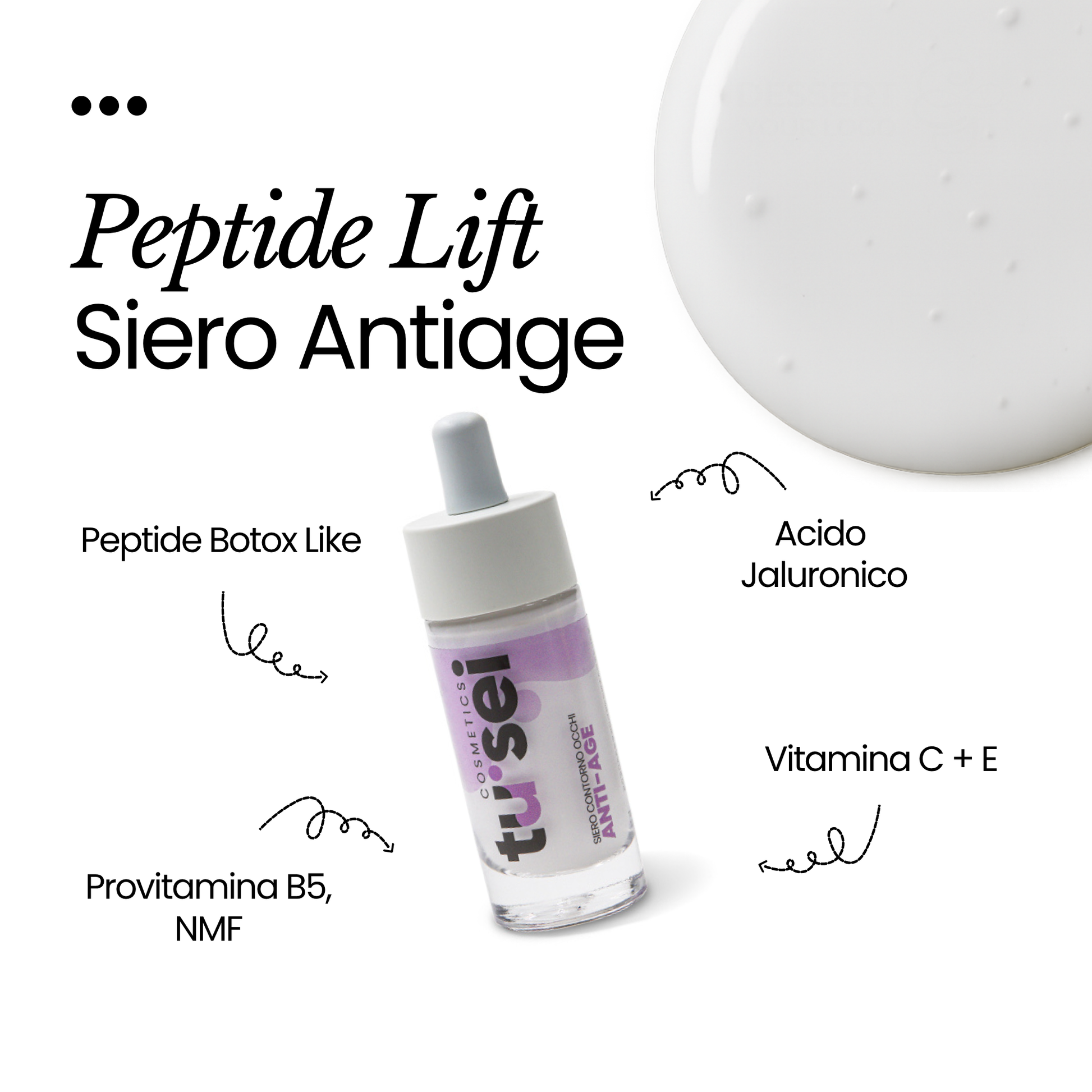 Applica 2-3 gocce su viso, collo e contorno occhi. Picchietta delicatamente fino ad assorbimento. Attendi 60 secondi. La texture emulsionata media crea uno strato protettivo, i peptidi lavorano in superficie e la vitamina C potenzia l'azione antiossidante.